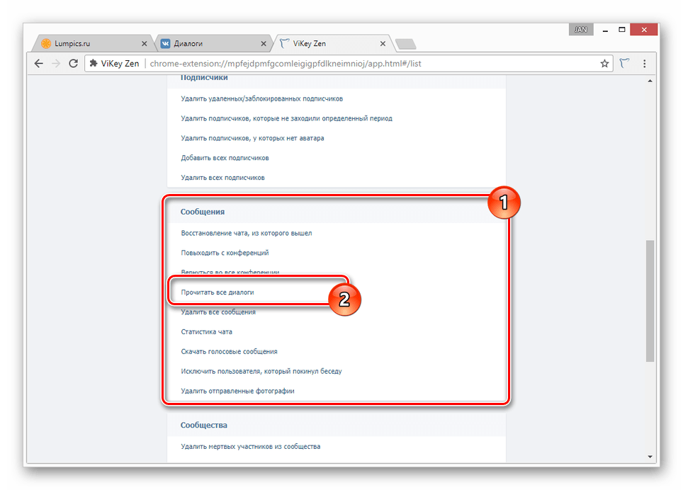 Итак, первый способ, как прочитать все сообщения в ВК сразу – использовать расширение для браузера ViKey Zen. Данное расширение добавляет дополнительный функционал, в числе которого есть возможность прочтения всех непрочитанных ЛС одним кликом.