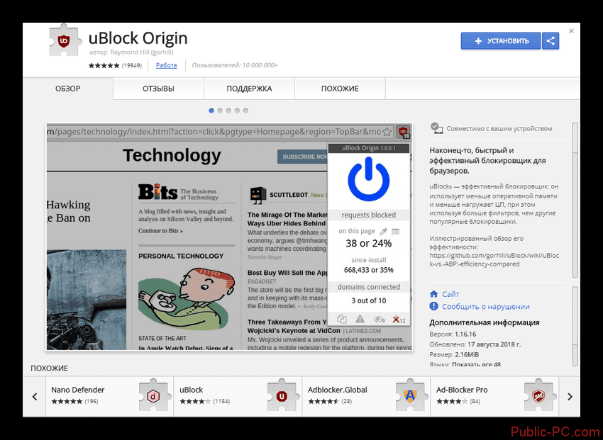 Если предыдущий способ вдруг не сработал, то можно попробовать установку специальных расширений, которые направлены на устранение рекламы со всех сайтов, а не только ютуб.