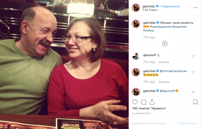 В одних ее биографиях пишут, что она родилась во Владикавказе, в других – в Москве, и такая путаница возникла из-за того, что семья Галич много раз переезжала с маленькими детьми с места на место (у Иды есть еще старший брат). Сама девушка упоминала в интервью, что родилась в Германии, потом почти сразу муж с женой переехали в Бийск. Еще среди городов, где семейство военного успело пожить – Омск, Санкт-Петербург: всего, по словам Иды, ее папа и мама за тридцать с лишним года совместной жизни переезжали пятнадцать раз! Василий и Зарина пережили много трудностей, как рассказывала их дочь: внезапные переезды, война в Осетии, болезнь мамы (слава богу, это закончилось благополучно), и сейчас про них Ида говорит: «Они, столько перенесшие за долгие годы, теперь настоящие «попугайчики-неразлучники».