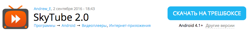 • Скачать утилиту можно абсолютно бесплатно на сайте Трешбокс — https://trashbox.ru/topics/95858/skytube-2.0