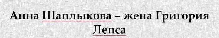 Зовут это «счастье» Анна Шаплыкова. История их знакомства весьма комична и романтична одновременно. При первой встрече Лепс представился и… сделал предложение руки и сердца. Конечно же, он получил отказ. Молодая девушка, танцовщица из балета Лаймы Вайкуле Анна Шаплыкова, и представить себе не могла, что перед ней ее будущий муж. На момент знакомства Лепсу было 38, Анне — 29. Их знакомство произошло на дне рождения мужа Лаймы