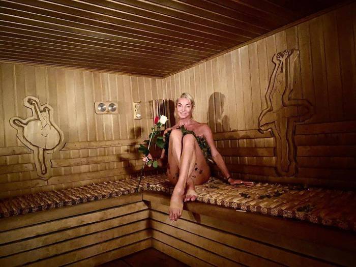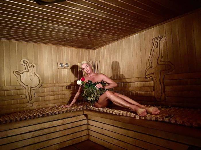 Как совсем недавно в банном комплексе, где балерина стояла в бане совершенно голая, выставив напоказ свои стройные ноги, а все остальное благоразумно прикрыв банным веником.