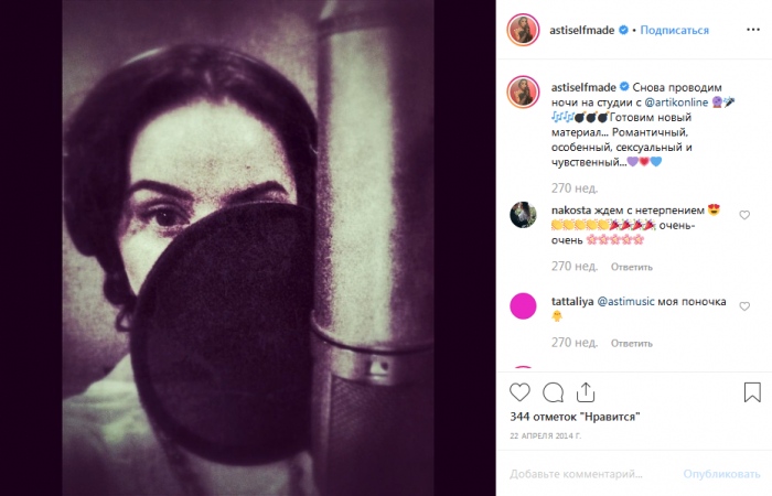 Она до сих пор подчеркивает, что уехала с Украины только потому, что этого требовали работа и невероятно плотный график. «Люблю свою страну, люблю родной город и Днепр, мне там спокойнее и милее всего. Но я уже задыхалась от бесконечных перелетов-чартеров, не высыпалась, и пришлось сменить место жительства только для того, чтобы было больше свободного времени на творчество», – ее слова. Артик помог девушке адаптироваться к новой жизни в столице, терпел ее нервные срывы и истерики, когда у нее сдавали нервы. «Он не просто стал родным человеком, он – мой брат! Я приехала в Москву и была совсем одна, и мы вместе преодолевали мои трудности», – еще одно признание Асти.