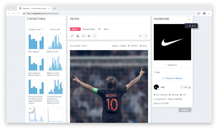Эти показатели умеет считать, к примеру, сервис Popsters.