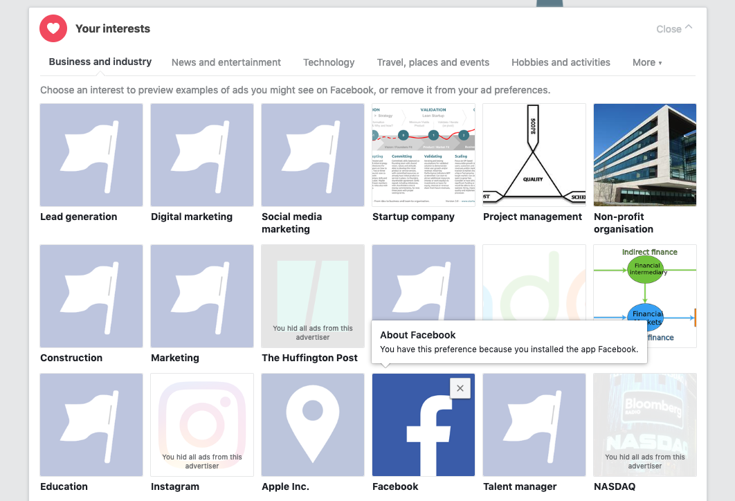 Но одновременно можете понять, что знания его не совершенны, иногда не соответствуют действительным интересам пользователя. Например, вы могли как наемный сотрудник исследовать какую-то тему на Facebook, но данный интерес не является частью вашего личного.