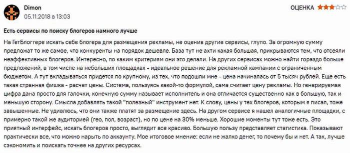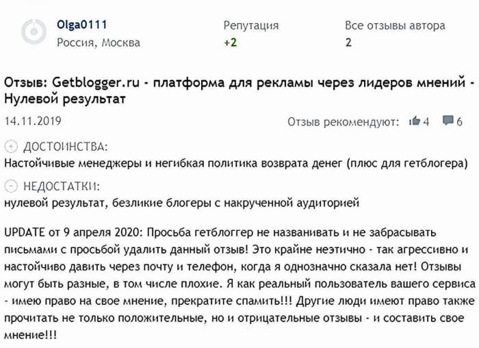 Это не весь отзыв, но здесь интересен апдэйт. GetBlogger тщательно следит за репутацией в сети, но иногда их попытки создают противоположный эффект