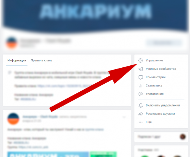 На главной странице сообщества откройте настройки по кнопке «управление».