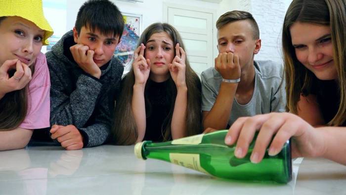 В стандартной игре правила бутылочка максимально просты. Все участники круг в садятся, в центре располагается бутылка. Далее по выбирается жребию первый игрок, он раскручивает бутылочку. момент Напряженный… ожидание… и бутылочка указывает на кого-то из Того. игроков, кого выбрала бутылочка нужно так. И поцеловать по кругу. Следующий игрок, который вращать будет бутыль тот, кто принял Если. поцелуй поцелуи вам не интересны, можно игру интерпретировать на любой лад, используя любые Причем. версии игра может быть детской, или подростковой для взрослых.