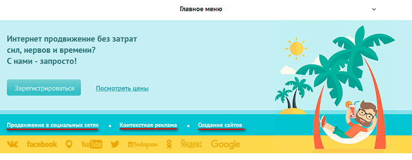 Современный проект для продвижения личных страниц и сообществ. Предлагает дополнительные услуги – создание сайтов и настройка контекстной рекламы. Пользователям доступен заработок на лайках в Твиттере, Одноклассниках, Facebook, ВКонтакте и других популярных соцсетях.