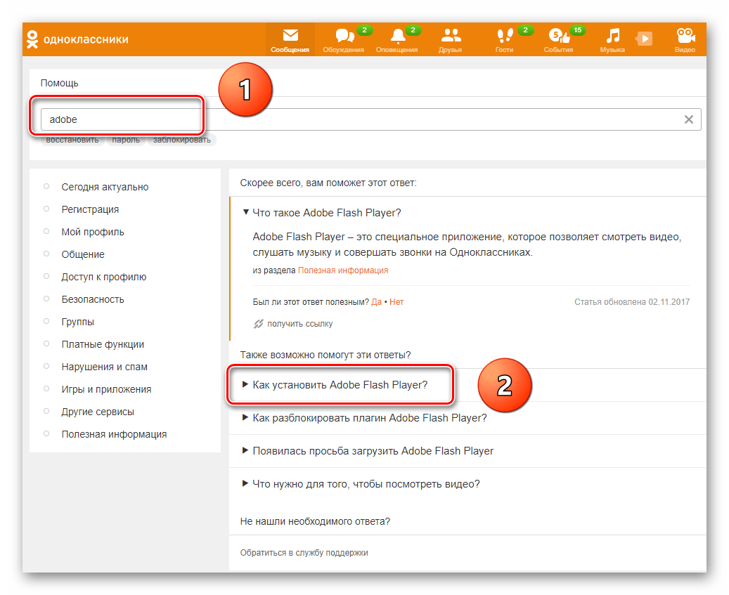 - 8 Не работает Adobe Flash Player в Одноклассниках