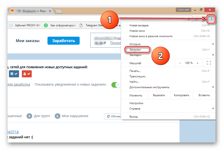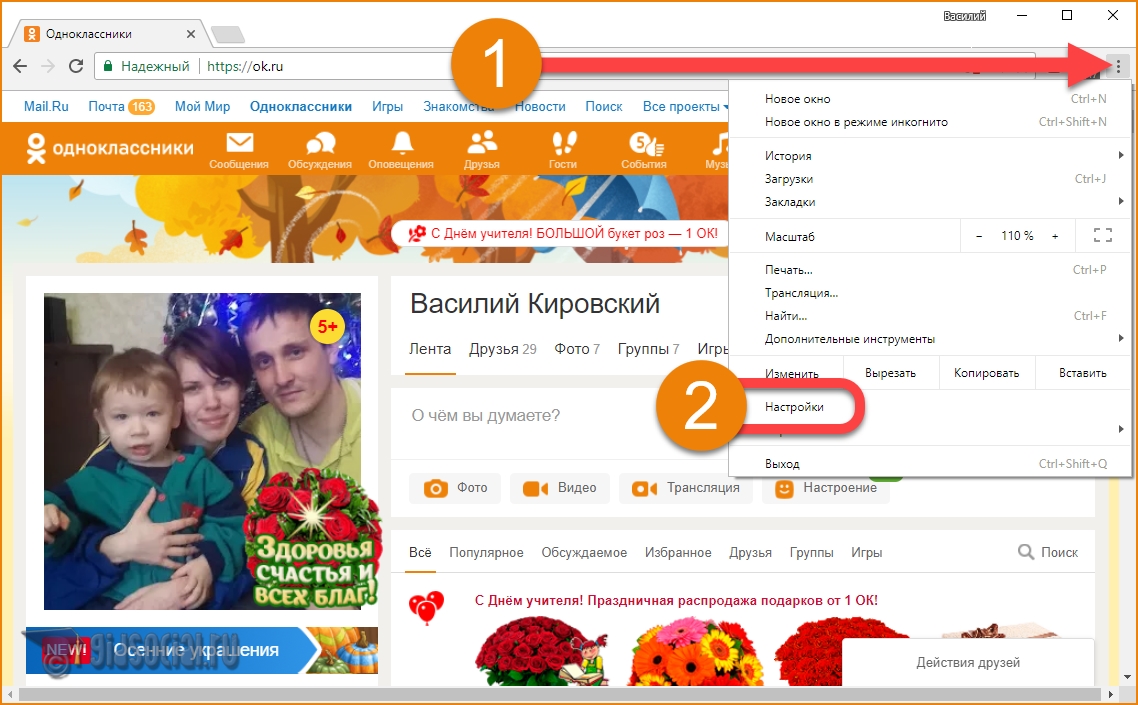 1) Открываем настройки браузера (см. скрин ниже).