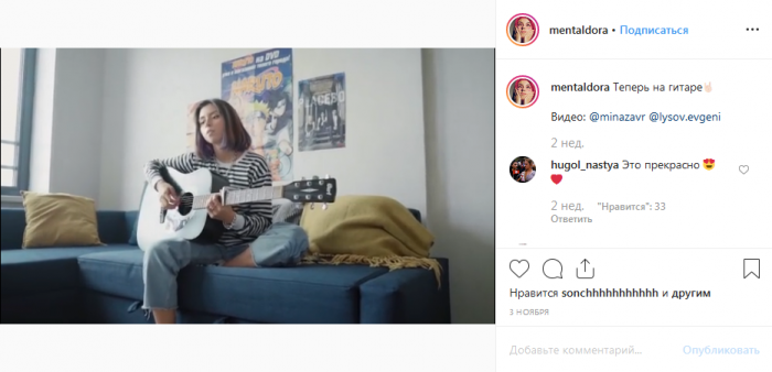 Кто-то подсказал ей сделать то, о чем ниже пойдет речь, или она сама так решила – неизвестно. Вряд ли второе: Дора очень стеснительная девушка и скромная, а вот первое случилось почти наверняка. Наверное, одна из подруг Даши посоветовала ей объявить сбор средств на новую гитару среди друзей. Этот факт правда имел место – про него в своем сюжете упоминал блогер n3oon, рассказывая о певице: «Чтобы выяснить некоторые детали ее биографии, мне пришлось с Дашей связаться, и она сама дала мне эту информацию». Итак, друзья Даши откликнулись на ее горе и собрали деньги на новый музыкальный инструмент, за что им стоит сказать огромное спасибо! И опять же подруги (как уже писала в ВК сама dora) подсказали ей создать в социальной сети паблик и туда начать выкладывать записи с ее песнями.