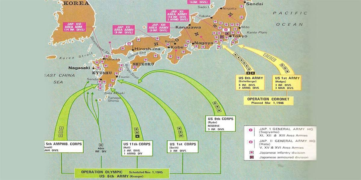 Первый подразумевал дату начала операции «Олимпик» – высадку союзников на о. Кюсю, находящийся на юге архипелага Японии. Второй должен был состояться спустя 3 мес. «День Y» – это день десантирования на о. Хонсю и продвижения к японской столице (операция «Коронет»). Сначала «День Икс» назначили на 01.12.1945 г., а «День Игрек» – на 01.03.1946 г. В конце весны 1945 г., вскоре после разгрома фашистской Германии, «День X» переместили на 01.11.1945 г.