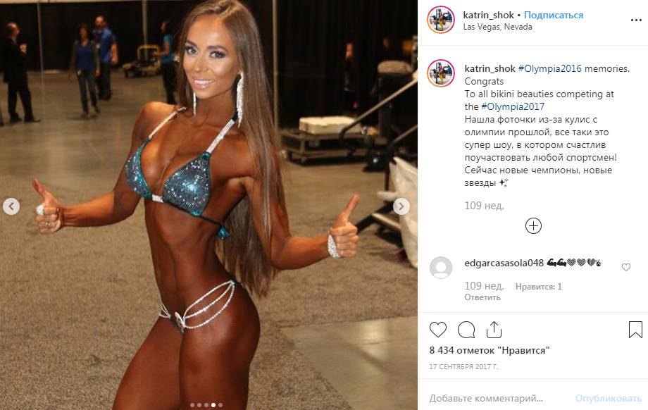 В 2014 году Катрин Шок (псевдоним) уже выступала на спортивных соревнованиях. Сразу же после первого выступления на спортивном чемпионате в Московской области она заняла четвертое место, что очень похвально для начинающей спортсменки. Спустя время девушке удалось подняться на 2 ступеньки выше на Кубке Москвы.