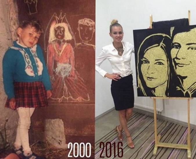 Самостоятельная девушка сама выбрала дело жизни. Елена Хромина с детства любит рисовать (в «Инстаграме» наряду с селфи выложены фото маленькой Лены и первых рисунков), окончила факультет графического дизайна в Липецком государственном педагогическом университете и создала оригинальный способ рисования. Студентка даже выступала в цирке с собственным номером – на все хватало времени и энергии.
