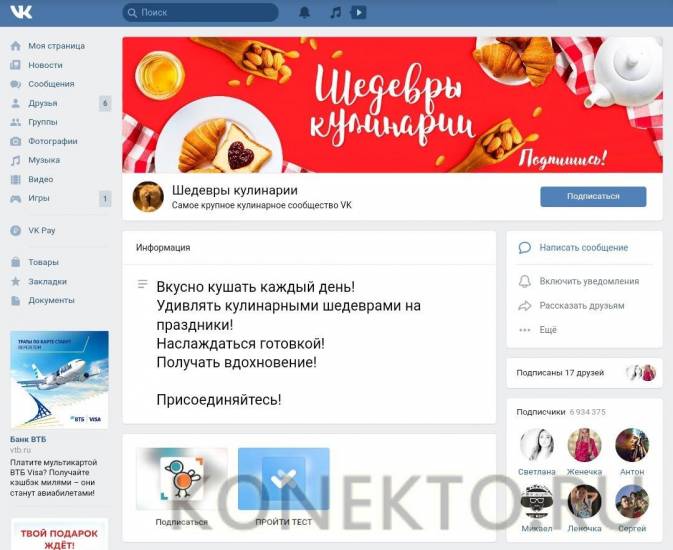 Число участников — 6934363 человека. Ссылка — vk.com/sh.cook