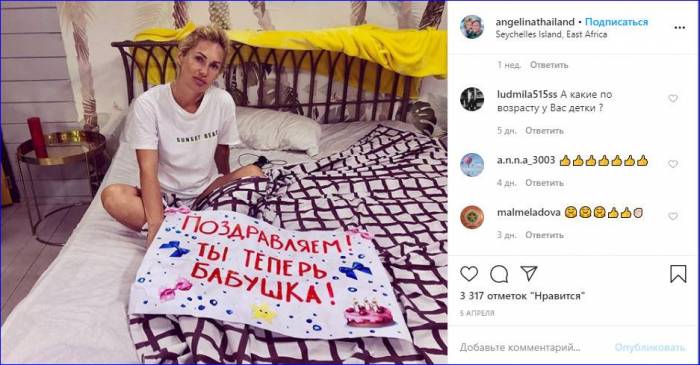 Кстати 5 апреля 2020 года Ангелина официально стала бабушкой. Ее старшая дочь Оля успешно разродилась и подарила Ангелине внучку.