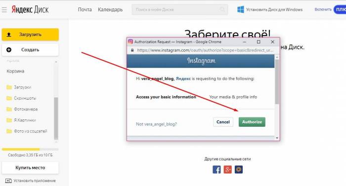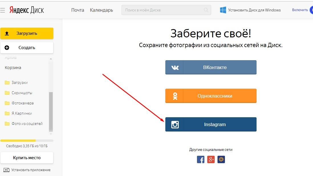 Для того, чтобы сохранить свои фото из Инстаграма на компьютер, нам понадобится Яндекс Диск. Если у вас ещё нет этого диска, то вы можете его скачать, зарегистрировав свой почтовый ящик на Яндексе.