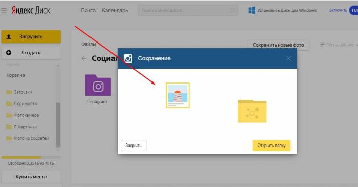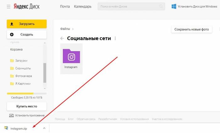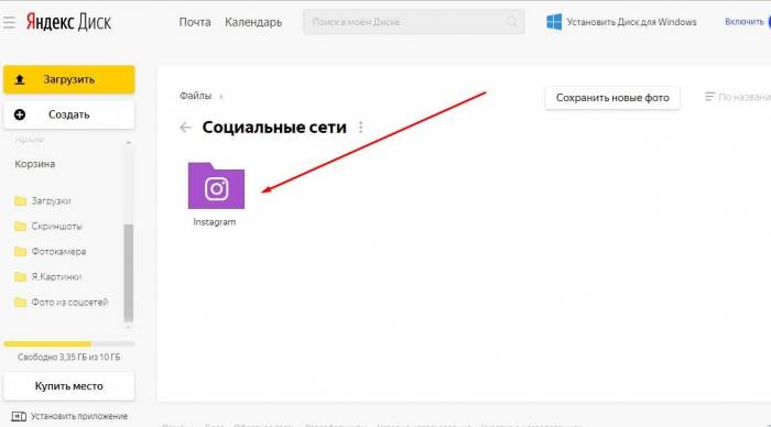 Сразу, как только фото из Инстаграма скачаются на Яндекс Диск, у вас появится папка «Instagram»: