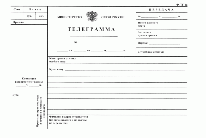 Заполнить бланк телеграммы в EXEL используя образец телеграммы