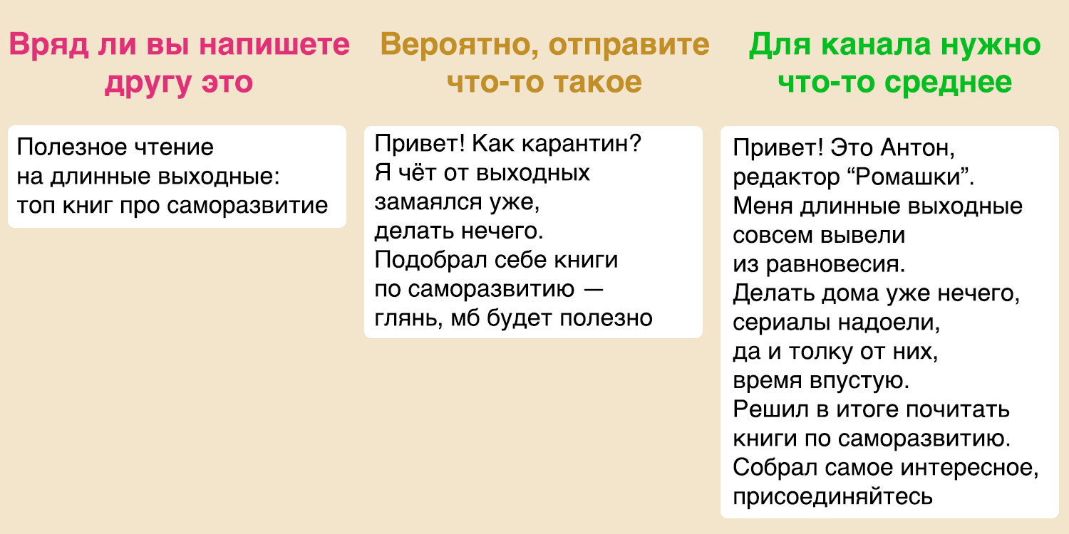 Также подписчикам не понравится видеть копипаст, с которым они уже несколько раз встречались на других ресурсах. Людям нравится уникальность и авторский взгляд на конкретную проблему.