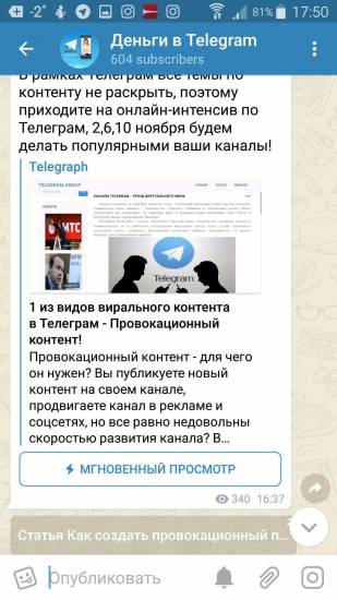 Telegra.ph дает возможность публиковать тексты, фотографии, видео. Если разместить ссылку на пост в Telegraph в чат или собственный канал, то подписчики смогут посмотреть статью с функцией быстрого просмотра Instant View. То есть, при нажатии на ссылку, происходит мгновенный переход на статью.
