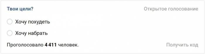 Мы выбираем один из пунктов и видим результаты голосования, где напротив выбранного нами пункта (в данном случае, пункт первый «Хочу похудеть») будет стоять галочка.