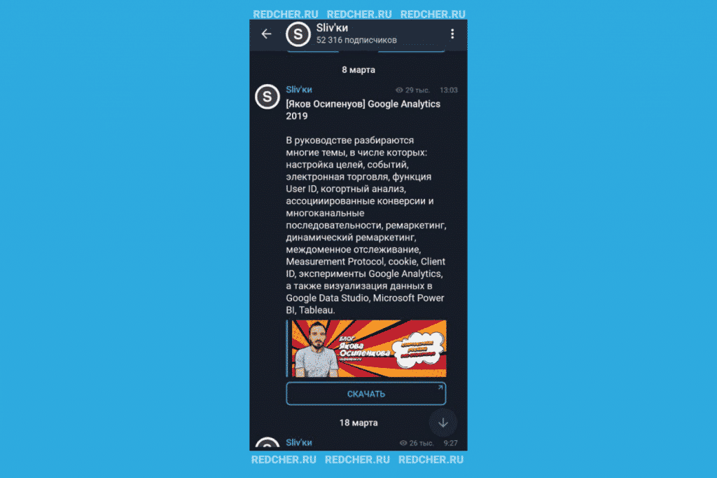 Конечно, авторы контента могут и попытаться забанить канал, так как он является рассадником пиратского контента. Правда, никто пока что так этого и не сделал. Поэтому можно без проблем присоединиться к нескольким тысячам единомышленников, которые тоже считают, что знания нужно давать бесплатно.