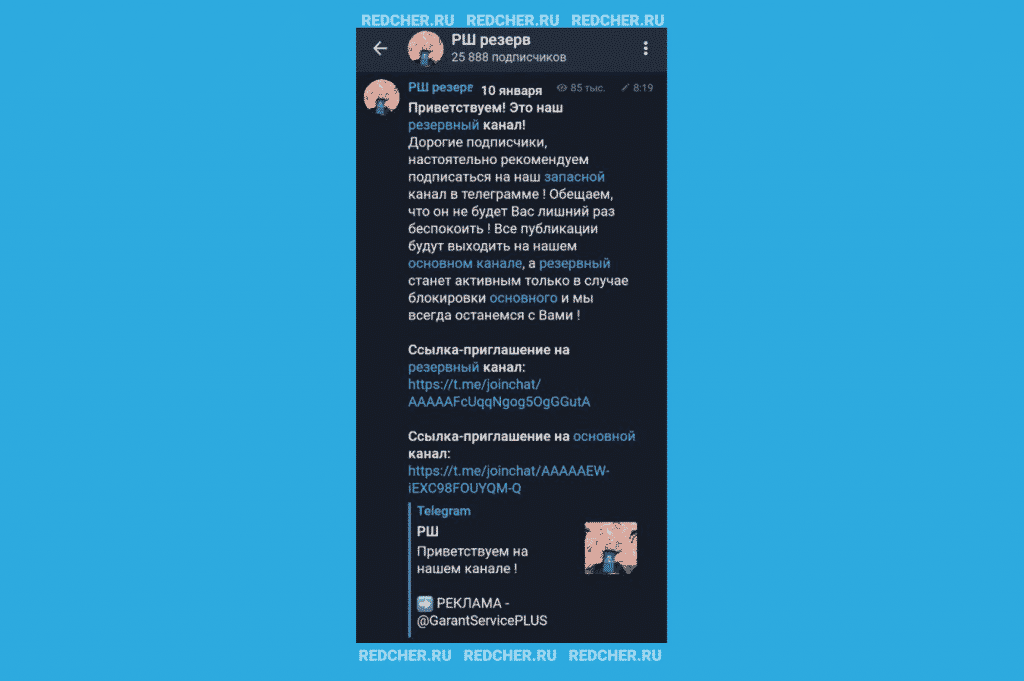 Но есть одно «но». Конечно же, авторы предусмотрели возможность блокировки. Поэтому они и создали резервный канал. Единственная запись там: ссылка-приглашение в закрытый чат, куда теперь и будет сливаться вся информация. Наслаждайтесь.