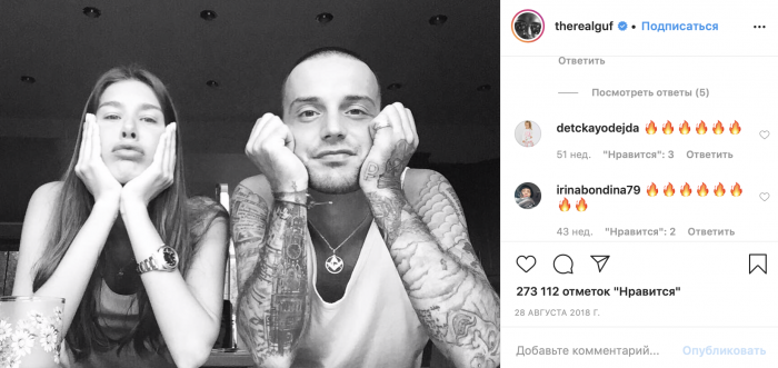 После сладких постов в Instagram и счастливых фотографий пара рассталась. Неожиданно для фанатов оба исполнителя сразу отписались от аккаунтов друг друга. На этот раз изменил Гуф, которого уличили в связях с участницей «Дома-2» Яной Швецовой.