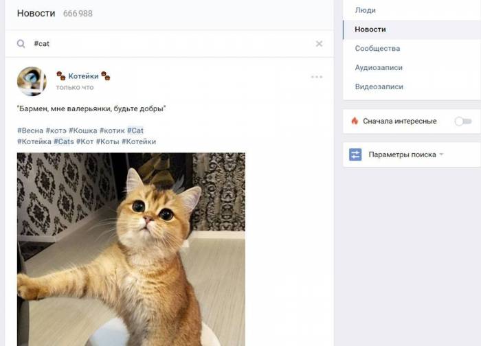 Переходим к следующему вопросу: зачем вообще нужны теги в соцсетях. Прежде всего, они необходимы для некоторой систематизации внутри сервиса. Пользователей ВК много, и посты публикуются в огромном количестве. Хештеги же позволяют искать публикации на определенную тему буквально одним кликом мыши. Например, запостили вы фото своего котика и хотите другими котиками полюбоваться. Поставили #кот под своей публикацией, опубликовали пост, нажали на тег и вперед – любоваться милейшими фотками котиков, опубликованных другими пользователями.
