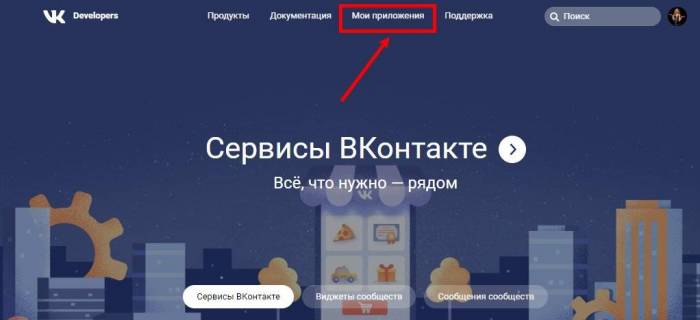 На экране нажмите на либо на кнопку наверху либо на ссылку в центре «Создать приложение».