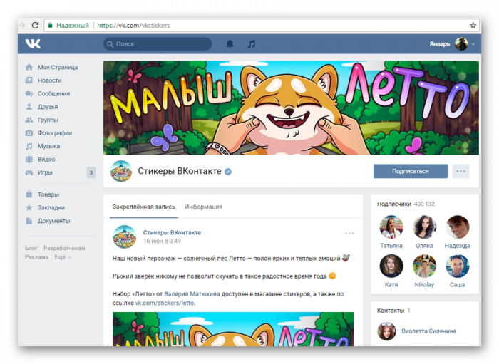 - Перейдите в официальное сообщество VK «Стикеры ВКонтакте» по соответствующей ссылке.