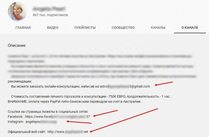 Стоит обратить внимание и на само описание канала. Случается так, что пользователю канала оставляет там что-то помогающее с ним связаться