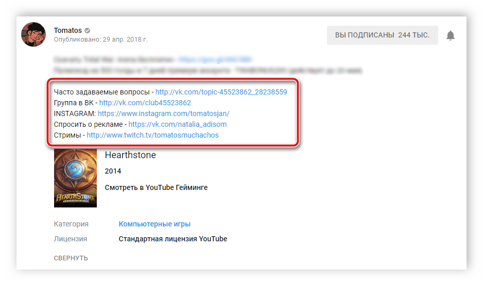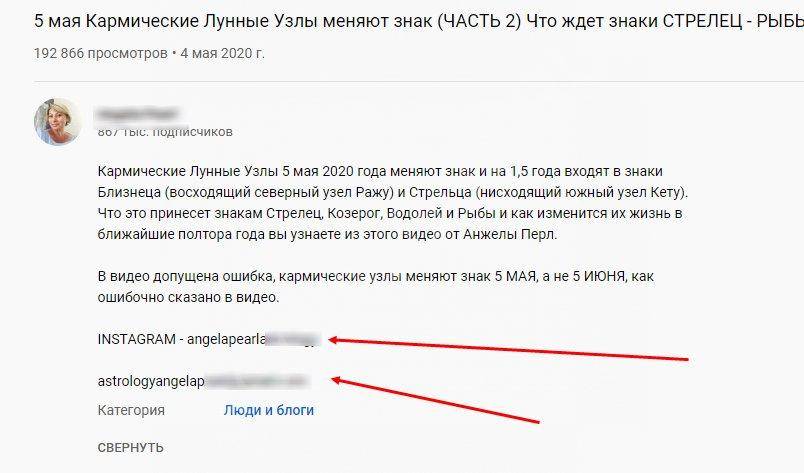 В случае, когда на странице канала ничего не указано, включите один из последних видеороликов этого автора и раскройте «Описание». Здесь также часто указывают контактные адреса.