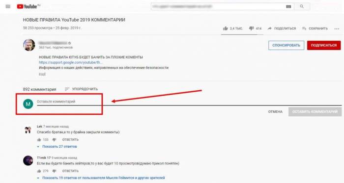 Чтобы оставить комментарии на YouTube под видео, находящимся в открытом доступе, достаточно найти соответствующее поле, ввести текст и нажать кнопку «Оставить комментарий».