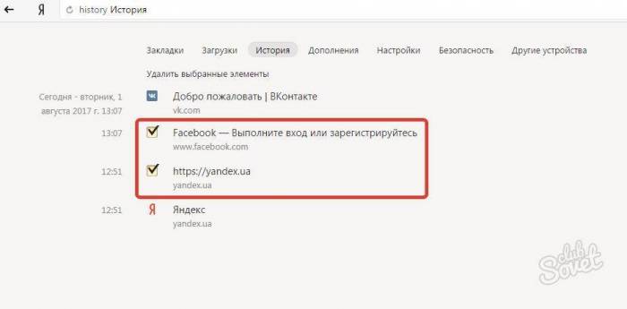 Данный способ не подходит, если вы хотите оставить некоторые сайты в списке просмотренных страниц. Для удаления только некоторых строк, отметьте их галочкой в окошке напротив каждого пункта.