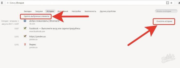Затем выберите раздел «Удалить выбранные элементы» или нажмите «Очистить историю».