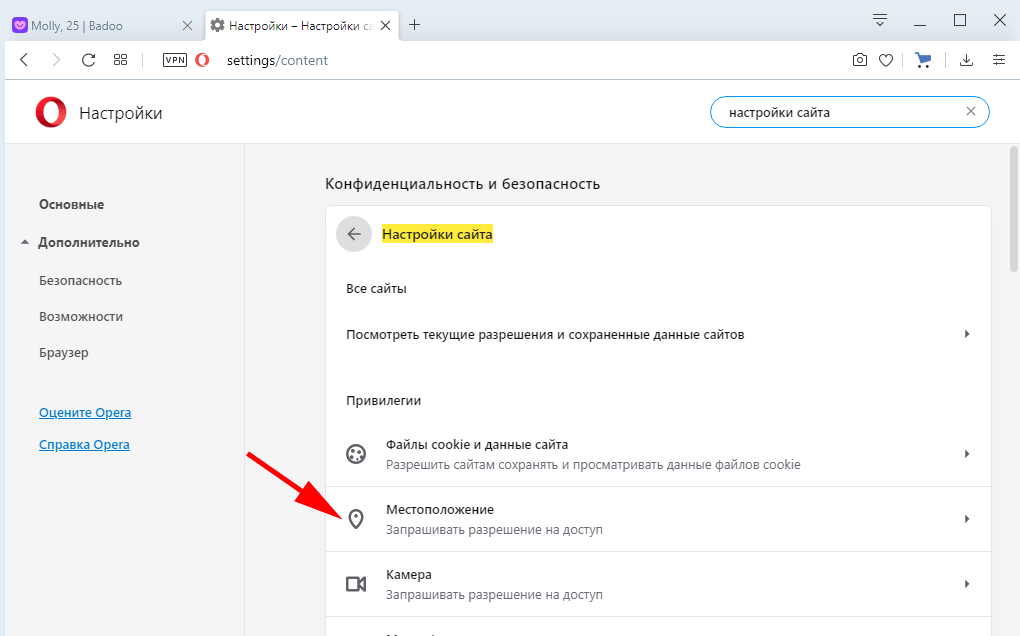 - Далее найти раздел «Местоположение» и кликнуть на него;