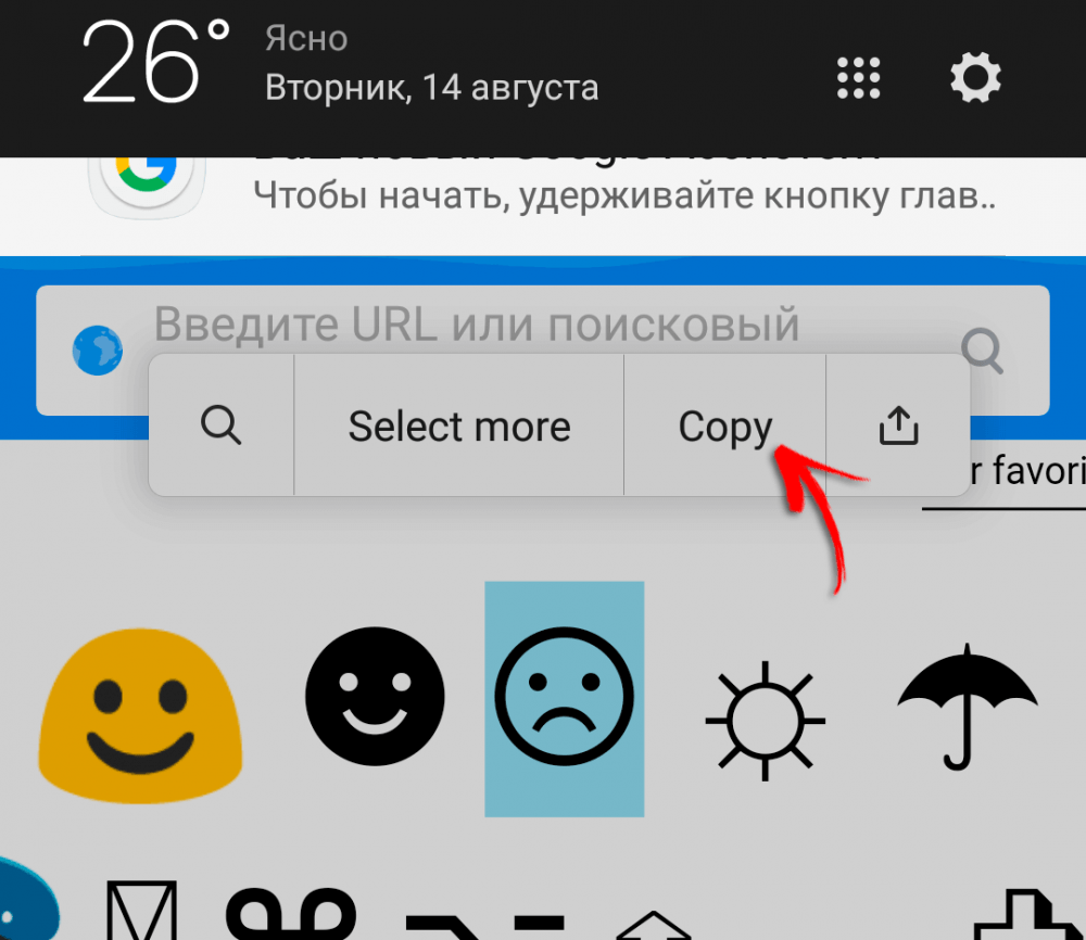 - Телефон моментально откликнется и выдаст в качестве уведомления то, что ссылка скопирована в буфере обмен.