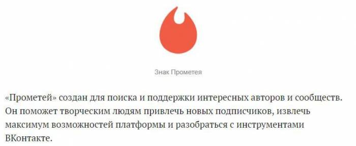 Прометей — это название одного из алгоритмов ВКонтакте. Его задача — при помощи искусственного интеллекта отбирать уникальный качественный контент, вызывающий повышенный интерес у пользователей, и дополнительно его продвигать. Алгоритм может отметить как отдельный пост, так и целое сообщество значком «огонь Прометея», что гарантирует попадание в рекомендации и хороший охват.