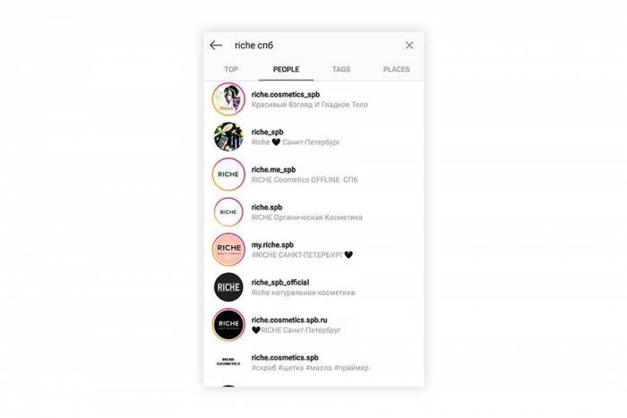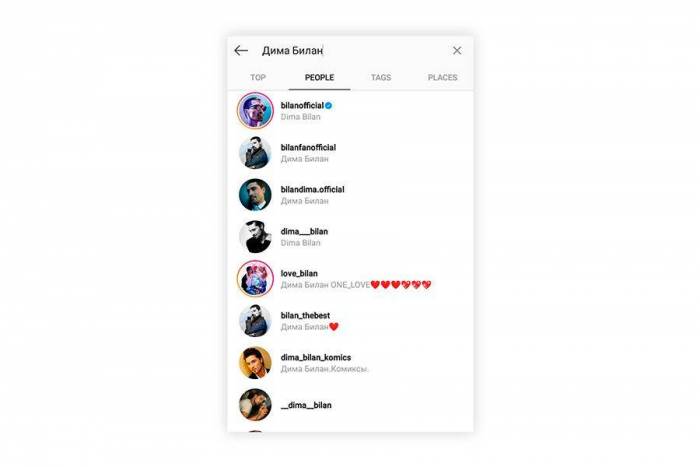 Например, проведите простой эксперимент и напишите в строке поиска в интерфейсе Инстаграм имя известной личности, зарегистрированной в сети. В результате увидите множество однотипных страниц и только одна из них окажется реальной.