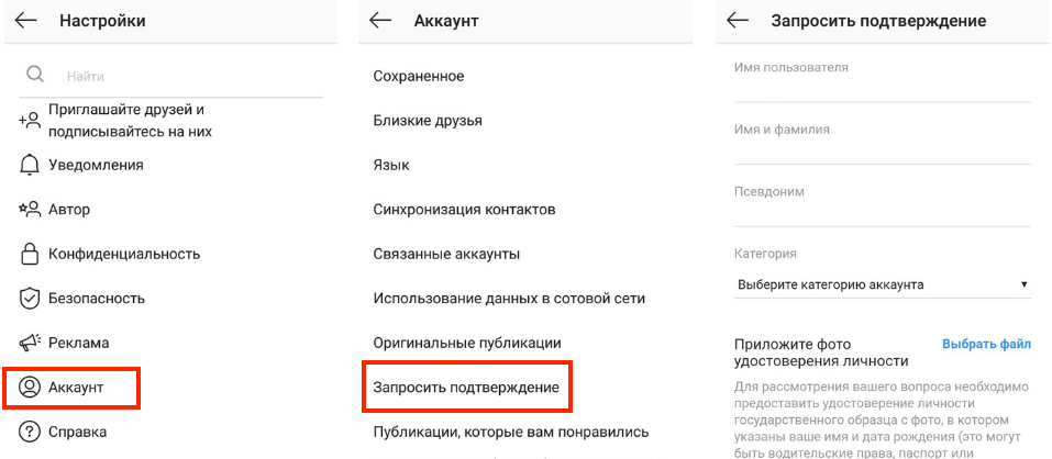 Шаги для подачи заявки на получение галочки верификации в Инстаграме: