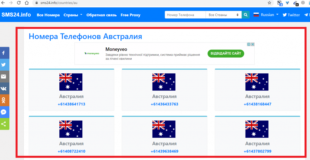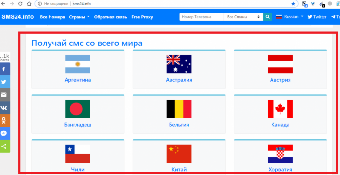 Вот еще один сервис “sms24.info” с временными бесплатными номерами. На этом сервисе сначала нужно выбрать страну: