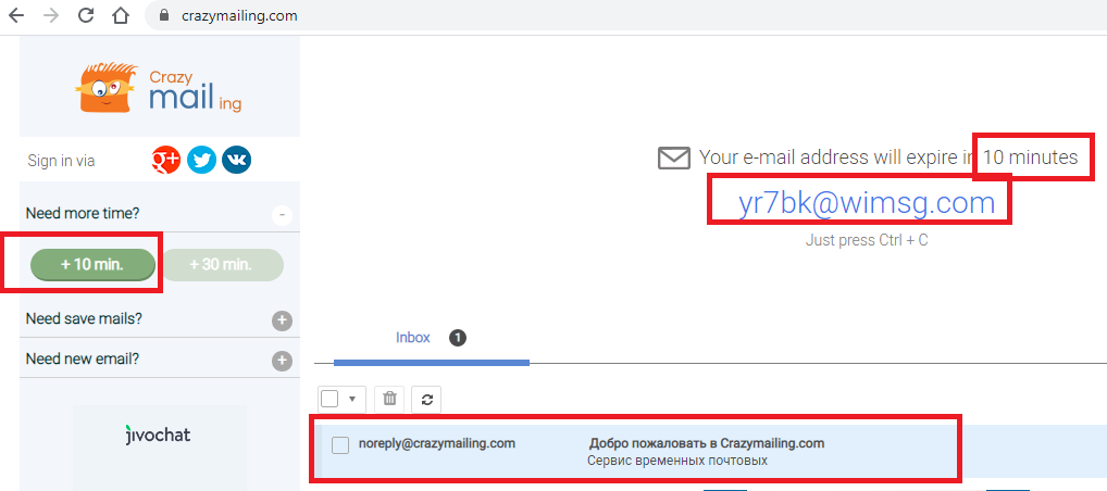 Регистрация с временной почтой такая же как показана выше со своей почтой.