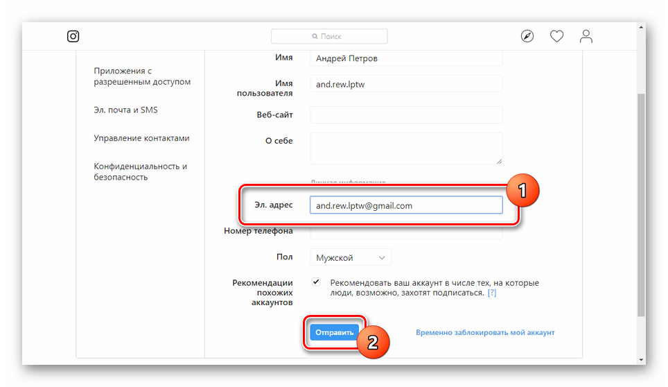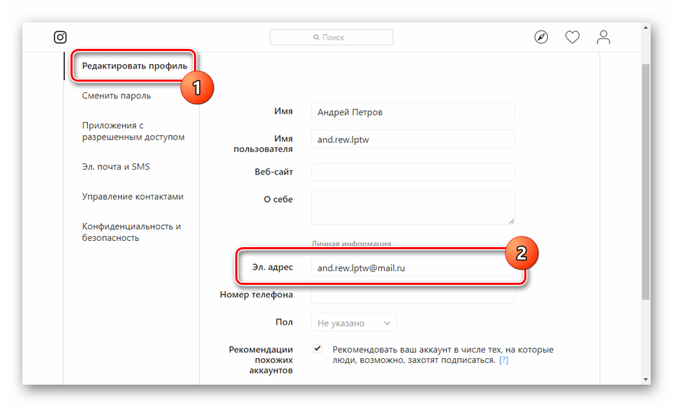 На компьютере основной и наиболее удобной версией Instagram является официальный веб-сайт, предоставляя практически все функции мобильного приложения. В том числе это относится к возможности редактирования данных профиля, включая привязанный адрес электронной почты.