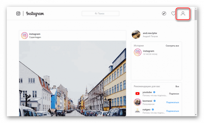 - В интернет-обозревателе откройте сайт Instagram и в правом верхнем углу страницы кликните по иконке «Профиль».