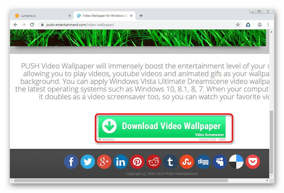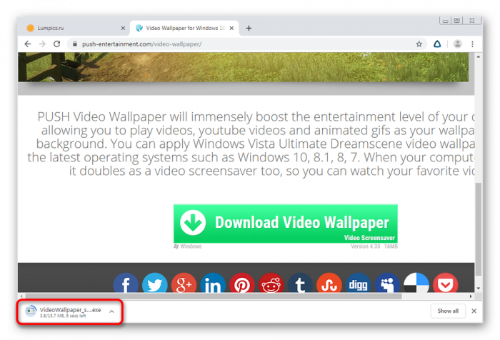 Опуститесь вниз окна, где найдите большую зеленую кнопку с надписью «Download Video Wallpaper». Именно на нее и необходимо нажать для начала скачивания.