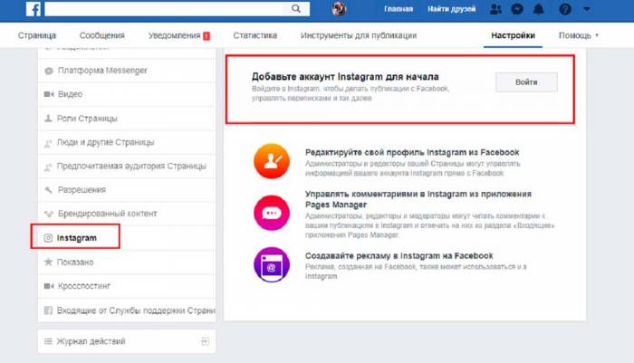 Рассмотрим способ, как связать страницу Фейсбук с Инстаграмом через Фейсбук.