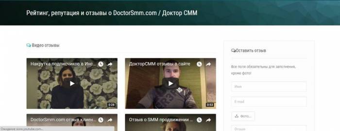 Чтобы удостовериться в качестве предоставляемых услуг перейдите в раздел «Отзывы», где размещены различные отзывы от пользователей услуг Doctor SMM в формате видеороликов.